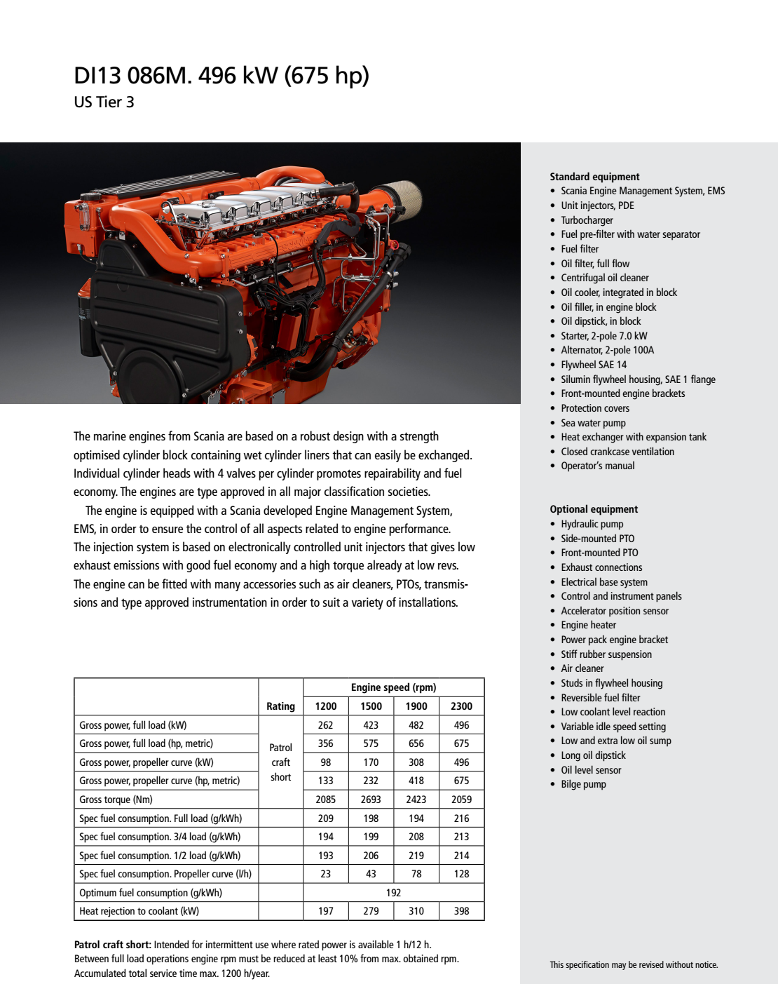 | 功率等級: | Patrol craft short | 滿載功率: | 262~496kw/356~675hp(1200~2300rpm) |