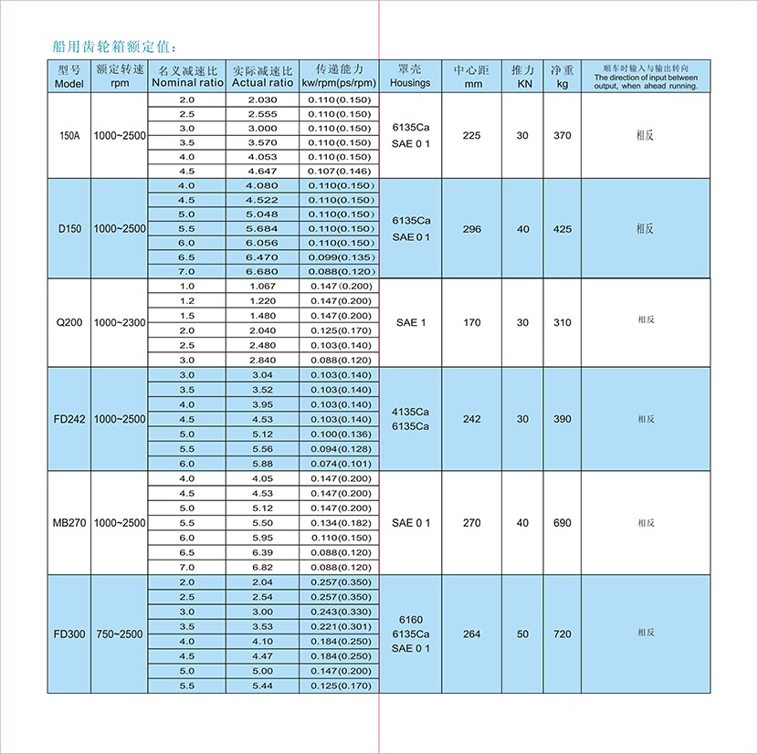 前進(jìn)名義減速比: 2.5 輸入轉(zhuǎn)速: 1000-2500rpm