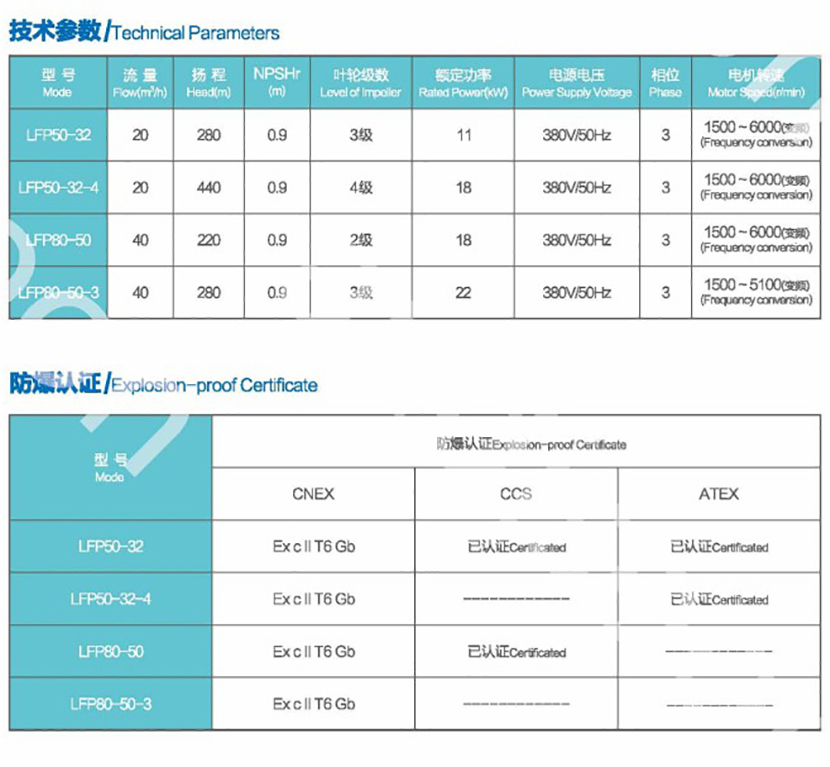 揚程: 220m 轉速: 1500~6000r/min