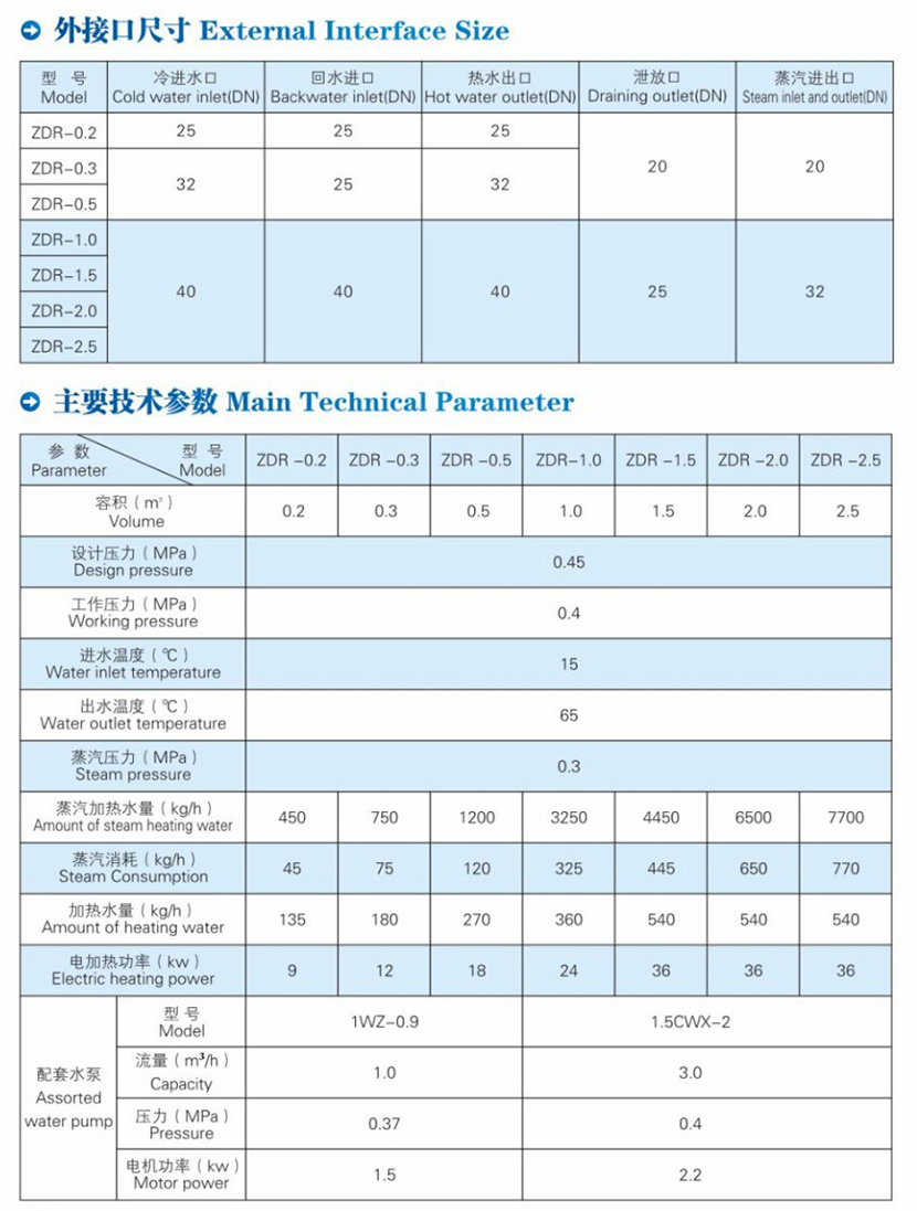 電加熱功率: 36 kw 蒸汽加熱水量: 4450 kg/h