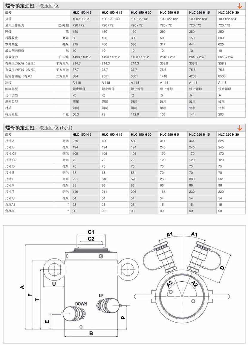 | 螺母鎖定液壓回位油缸 | |||