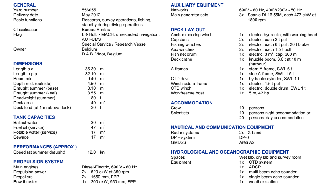 船組人員: 10 P 發動機功率: 2×520ekW at 350rpm