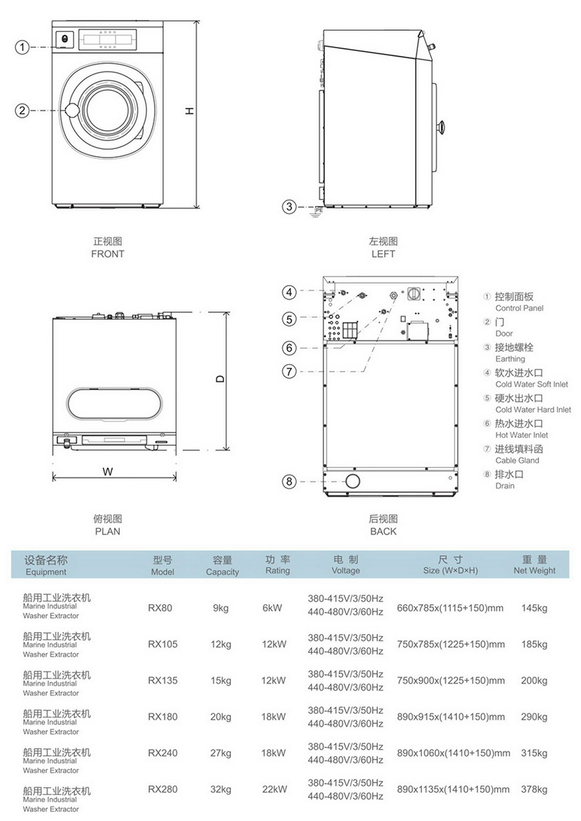 類型: 船用洗衣機 尺寸: 600×600×(860+150)mm