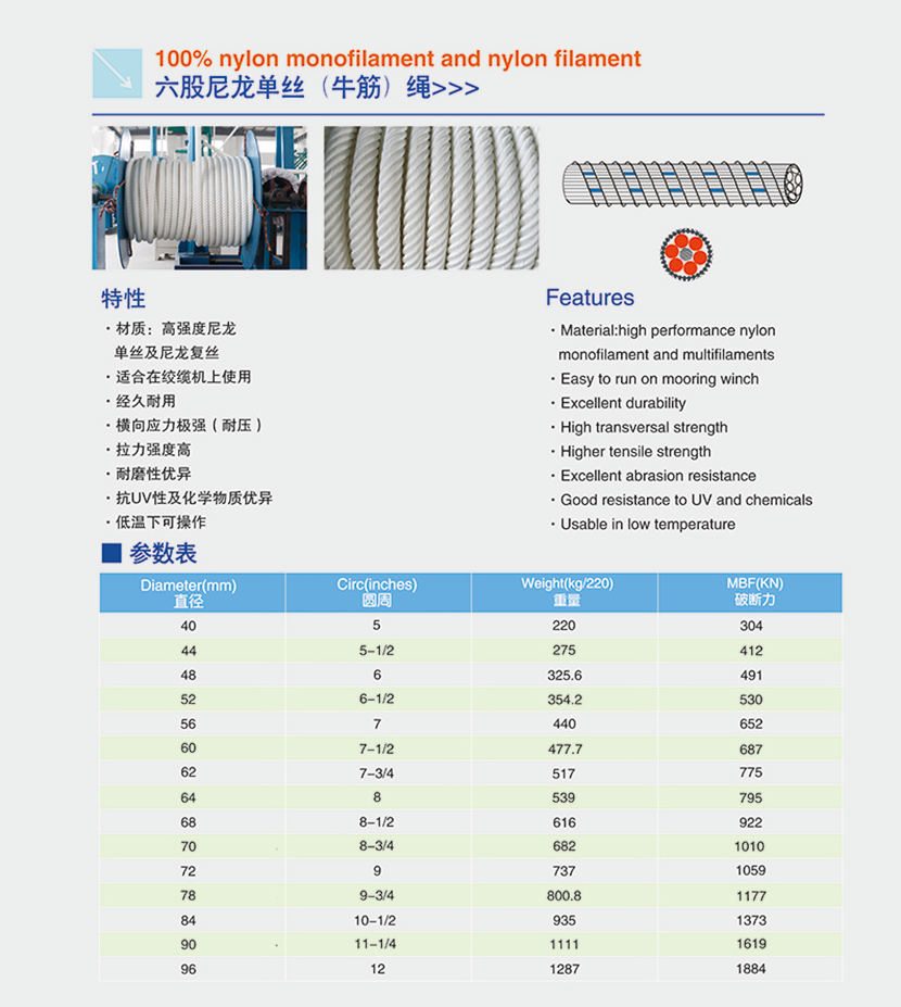 尼龍單絲復絲混合纜繩