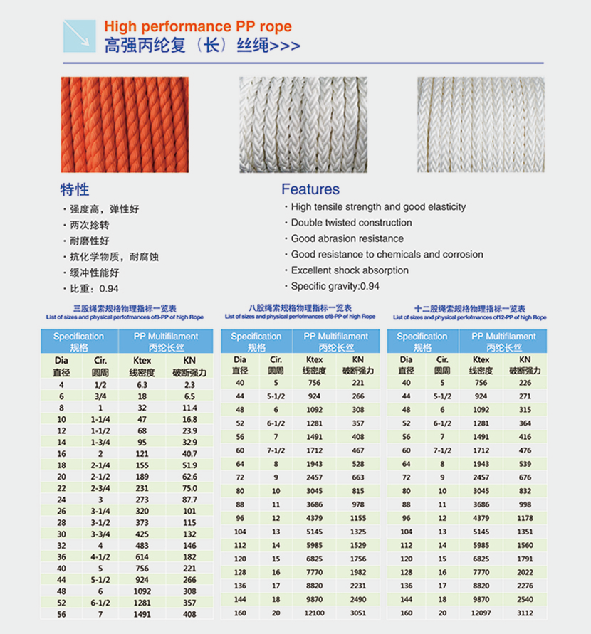 | 高強丙綸復(長)絲繩(三股) | |||