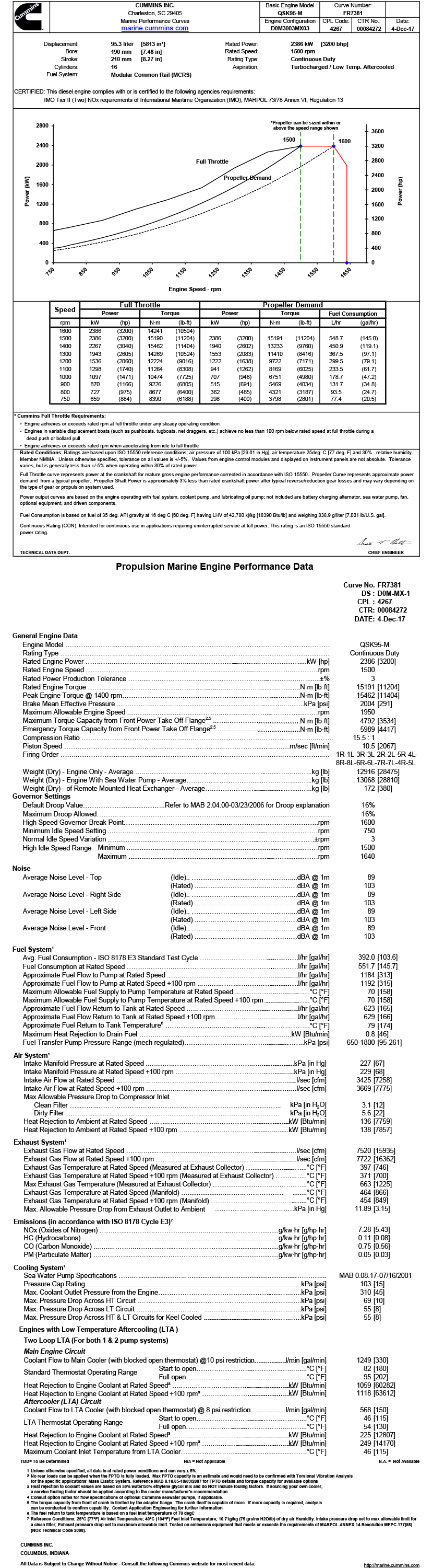 397℃(Measured at Exhaust Collector)/464℃(Manifold) |