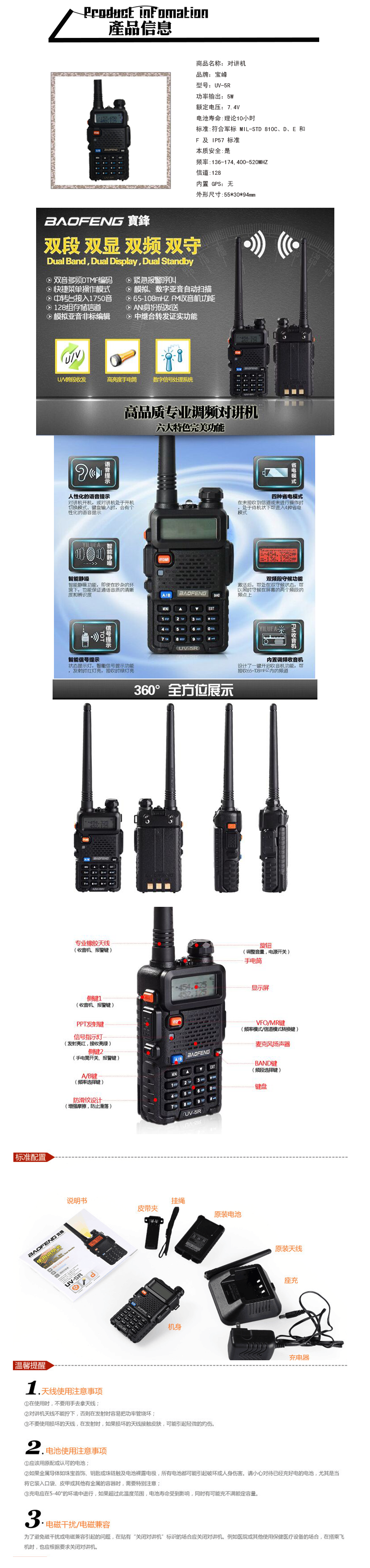 | 頻率: | 136-174MHZ;400-520MHZ | 續航時間: | 10小時 |
