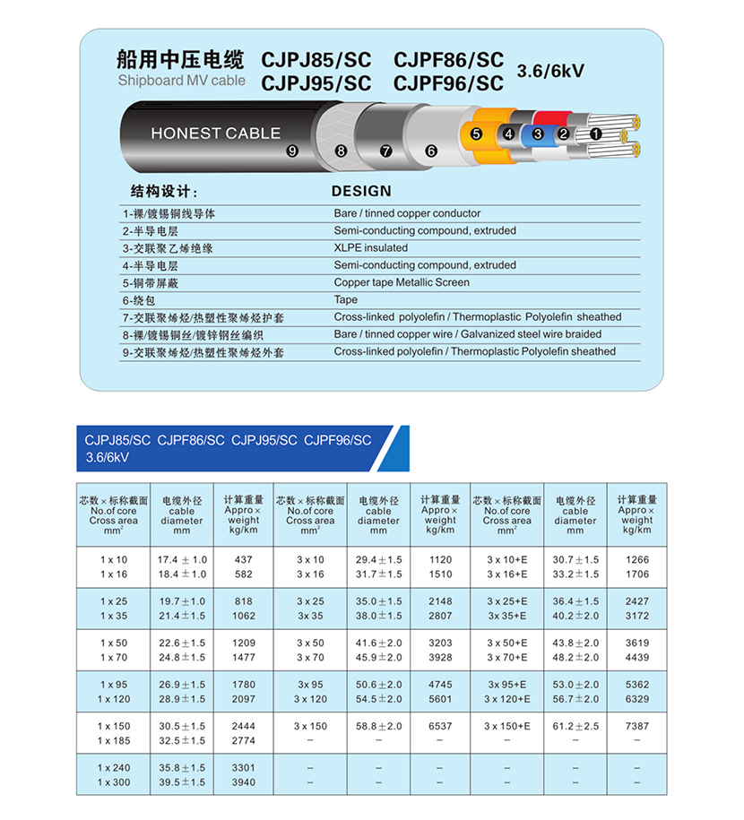 類型: 船用中壓電纜 名義直徑: 32.5±1.5mm