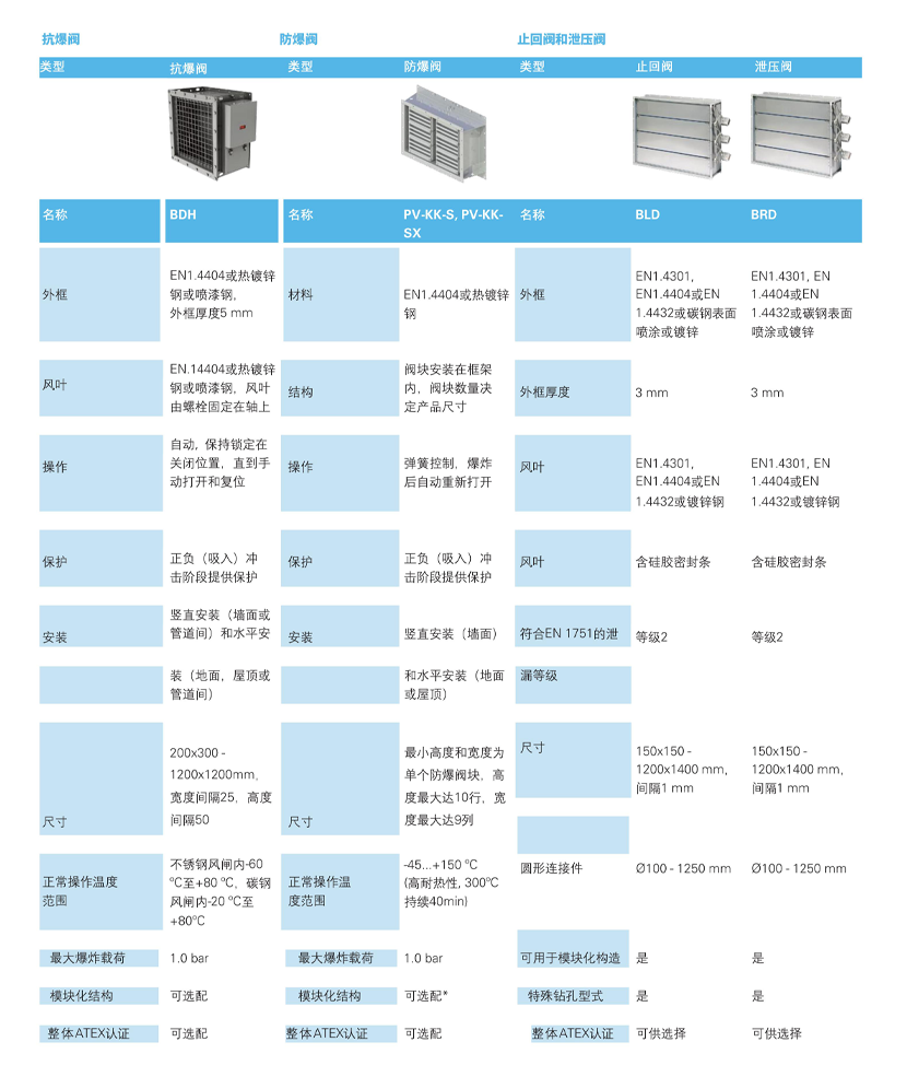 | 材料: | EN1.4301,EN1.4404或EN1.4432或碳鋼表面噴涂或鍍鋅 | 符合EN1751泄壓等級: | 等級2 |