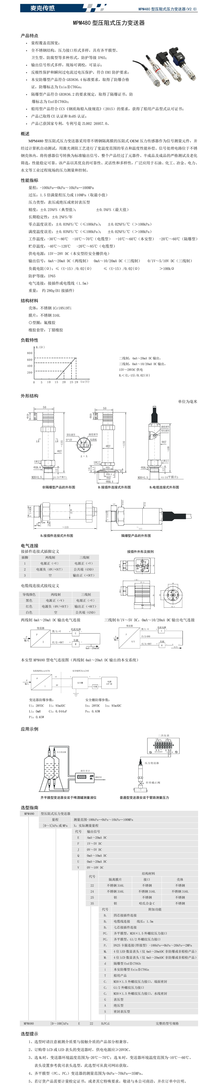 MPM480型壓阻式壓力變送器