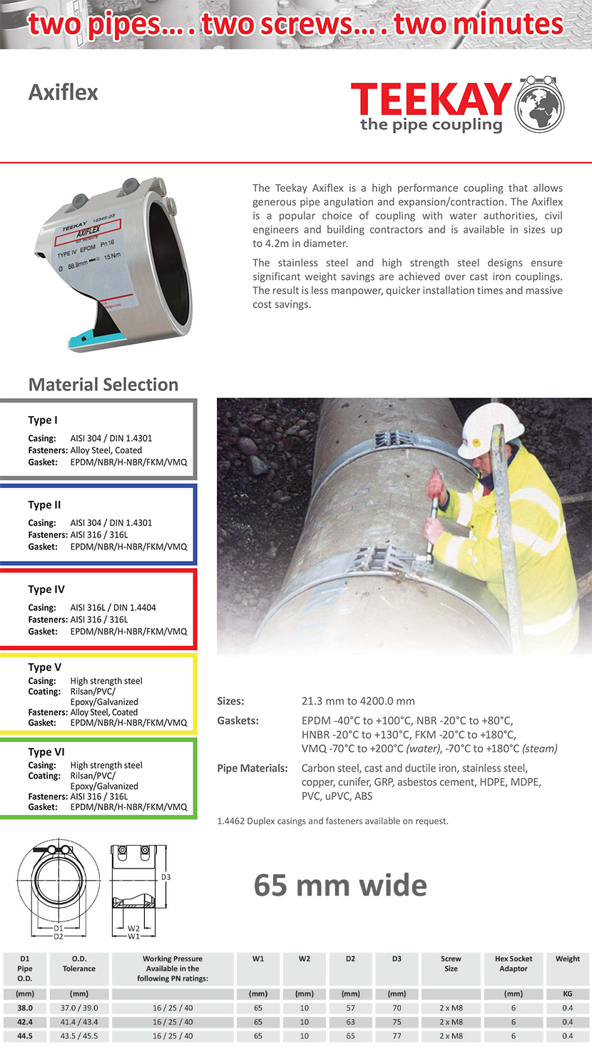 異徑最大差值: 非異徑 適用管道材質: Carbon steel, cast and ductile iron, stainless steel,copper, cunifer, GRP, asbestos cement, HDPE, MDPE,PVC, uPVC, ABS